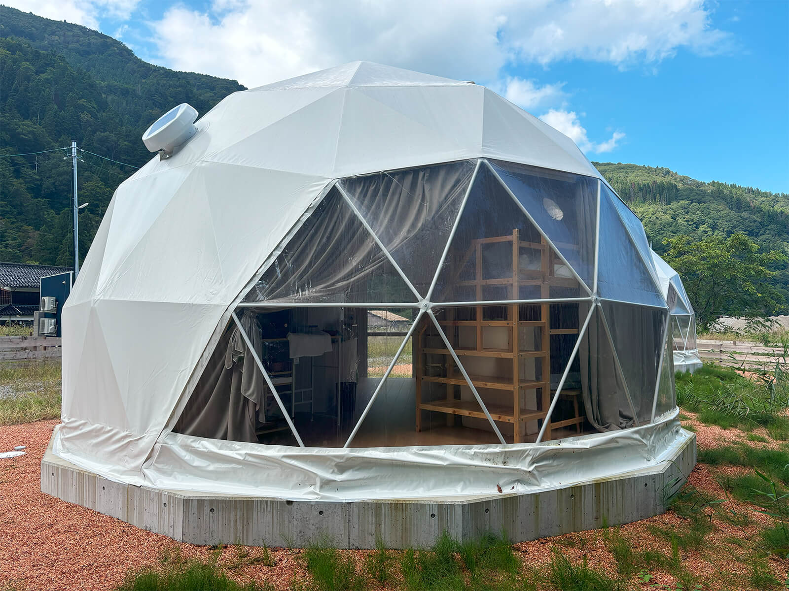 大型グランピングドームテントやトレーラーハウスの2種類の宿泊棟があります。